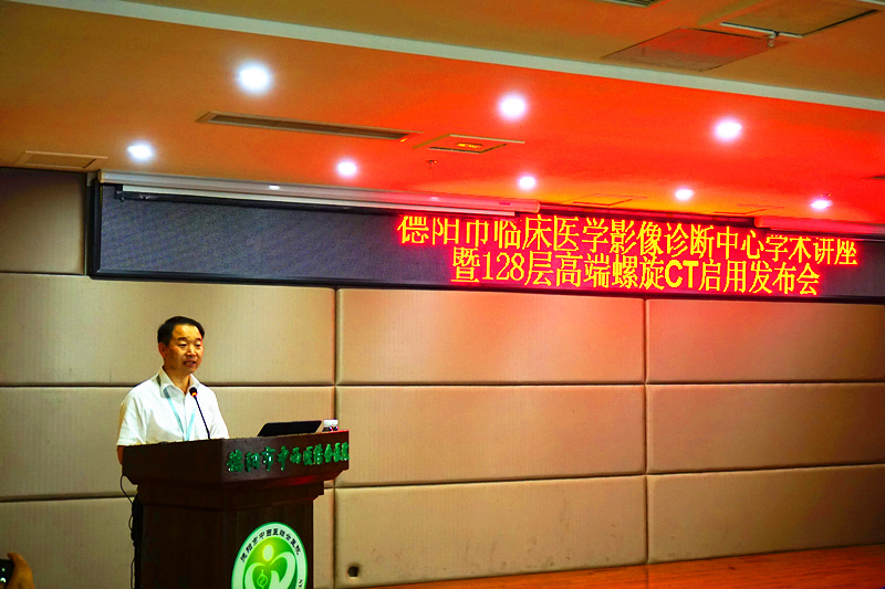 6月15日上午,我院在第二住院大楼10楼学术厅举行128层高端螺旋CT启用发布会暨放射影像与临床应用学术讲座。德阳市区各级公立、民营医院临床及放射从业人员近80人参会。