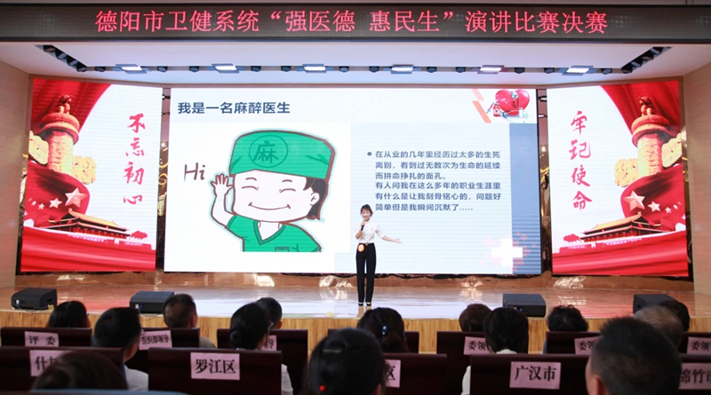 我院高度重视本次大赛,8月14日举行了“强医德、惠民生”演讲比赛初赛,来自全院各科室各岗位的22名选手参加初赛,手术麻醉科的马燕从初赛中脱颖而出,她代表医院参加了本次决赛,在15名决赛选手中以97.26分的高分获得第一名的佳绩。
