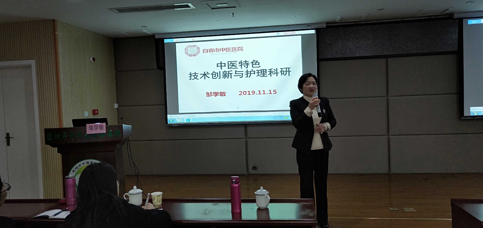 自贡市中医医院中医护理主任医师邹学敏分享了《中医特色技术创新及护理科研》,她用轻松幽默的方式为我们讲述了自己对中医特色技术的创新思路以及护理科研的必要性,并且现场演示了耳穴埋豆的中医技术,让我们感受到中医药文化的博大精深。