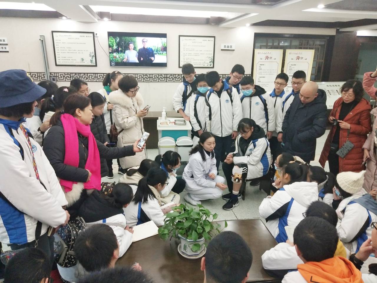 11月30日,我院接待了来自德阳中学初二(20)班的老师、学生和家长组成的56人的第二批研学团进行中医中药急救研学体验。在名医馆的中药材陈列室,同学们通过摸一摸三七的模样、闻一闻膏方的芳香、尝一尝山楂的味道、看一看中草药植物标本去整体认识中药。亲口去尝一尝辛、甘、酸、苦、咸的味道,体会一下“神农尝百草”的典故,真实感受中药的四气五味。