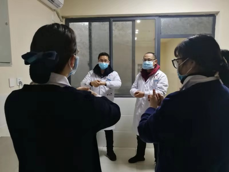 首先,科主任贾应鑫对《新型冠状病毒感染的肺炎诊疗方案》重点内容进行解读。结合全国目前新型冠状病毒肺炎案例,对该病毒肺炎的认识,以及防治的前期准备,疑似案例的监测、诊断、治疗、上报提出重要指示,其次对防治要点要求人人知晓,人人掌握:1、正确规范洗手、佩戴医用口罩,由护士长向丽亲自示范。2、要保持病房通风及消毒。3、切实做好病人体温监测,如有发热病人及时告知医生,及时上报,早发现、早诊断、早隔离、早治疗。4、落实健康教育,不传谣、不制造恐慌气氛。5、科室也需做好物资准备工作,如相关药品、口罩等。