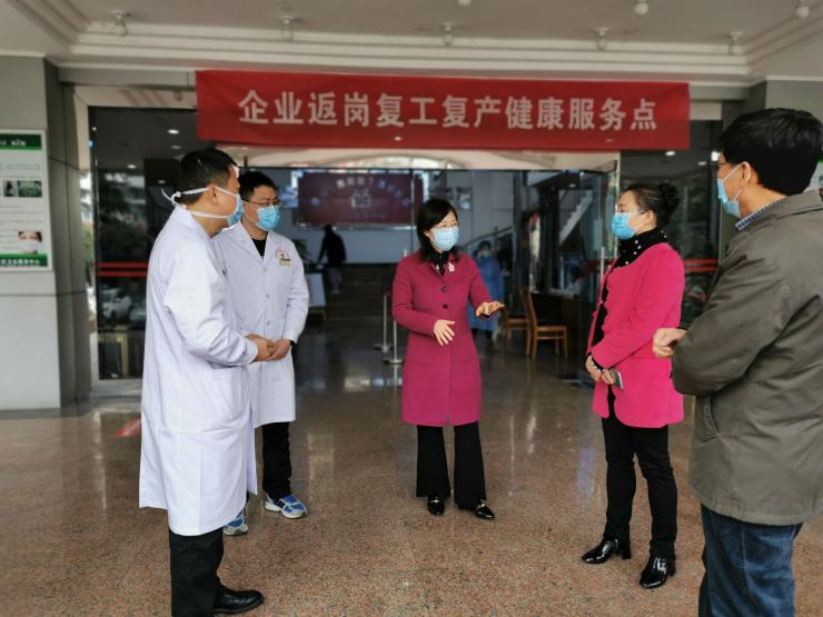 2月21日下午,德阳市人大常委会副主任李芳芳、教科文卫委员会主任委员张建国、副主任委员朱炳其一行3人到我院调研新冠肺炎疫情防控及企业返岗复工复产人员健康服务工作开展情况。市卫健委调研员尹红、我院院长陈万军、业务副院长邱俊、支委委员李蕾以及职能科室负责人陪同调研。