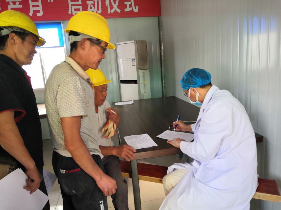 据悉,这是我院体检科受四川省第四建筑有限公司与德阳市方兴建设有限责任公司邀请,到项目部为奋战在施工一线的400余名农民工提供健康体检服务。为了方便工人,体检工作人员便将体检仪器、设备搬进了项目部办公室。