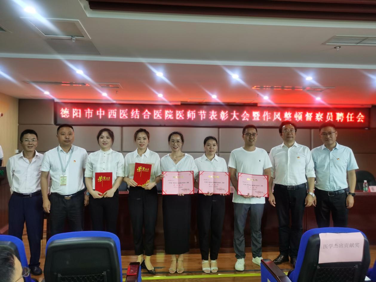 8月17日,在第三届“中国医师节”来临前,我院在第二住院大楼十楼会议室召开了首届“最美医师”表彰暨医院作风整顿督查员聘任活动。院领导班子、全体中层干部、“最美医师”获奖人员、作风整顿监督员参加活动。活动现场,院领导班子成员分别为“医学杰出贡献奖”、“医德典范奖”、“妙手仁心奖”、“医学新星奖”、“最美提灯天使奖”、“最美健康卫士奖”、“抗疫先锋”先进个人、“优秀学科团队”和“最美医师”9个奖项的获得者42名最美医师和4个优秀团队进行了表彰并颁发荣誉证书。勉励全院医务人员大力弘扬“敬佑生命,救死扶伤,甘于奉献,大爱无