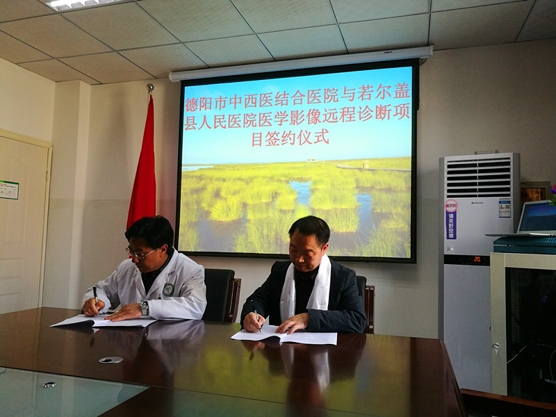 小康路上,一个都不能少,健康扶贫,使命重大光荣。为了让藏区同胞在当地享受到上级医学影像专家的诊断服务,4 月 3 日-6日,我院党支部副书记、市临床医学影像诊断中心执行主任王秀林协同影像中心战略合作伙伴明峰/影泰集团工程技术人员到若尔盖县医院开展医疗帮扶工作,与若尔盖县医院签订医学影像远程诊断项目协议,开启若尔盖县首次医学影像的远程诊断。项目的实施也是德阳对口帮扶若尔盖医疗卫生同质化建设的重要举措。