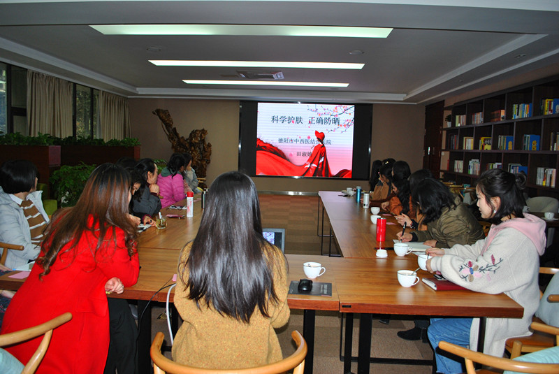 3月15日下午,我院中医皮肤硕士研究生田淑娥医生受邀到中共德阳市委办公室,为那儿的女性朋友们开展了一场精彩的“科学护肤 正确防晒”健康知识讲座。