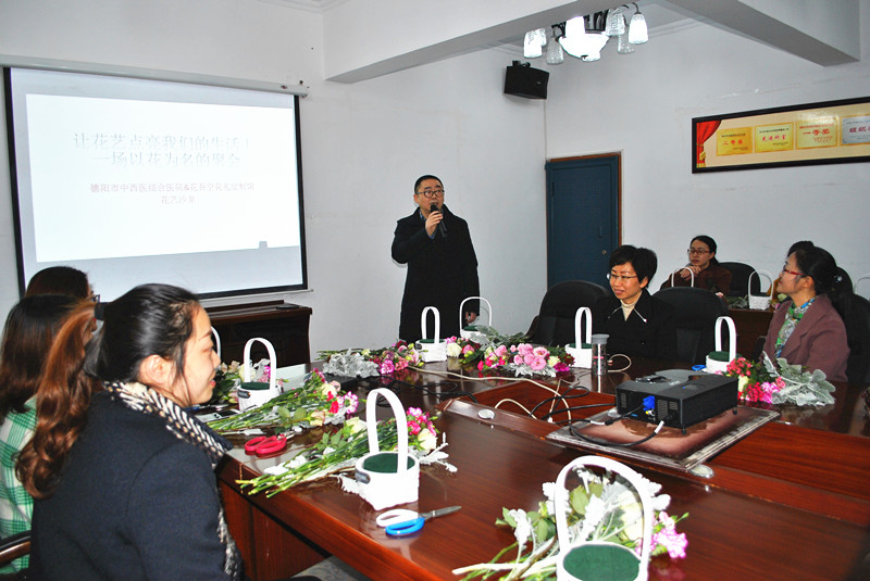 阳春三月,花红柳绿,万物复苏,到处都呈现出生机勃勃的美丽景象。在这春意盎然的美好三月,为庆祝“三·八”国际妇女节,我院工会结合医院工作实际,组织全院女职工分两次在门诊四楼会议室举办以“让花艺点亮我们的生活”为主题的首届花艺沙龙。本次活动邀请了专业的花艺老师到场授课。
