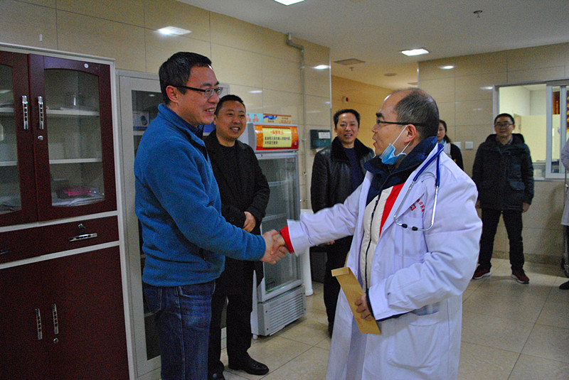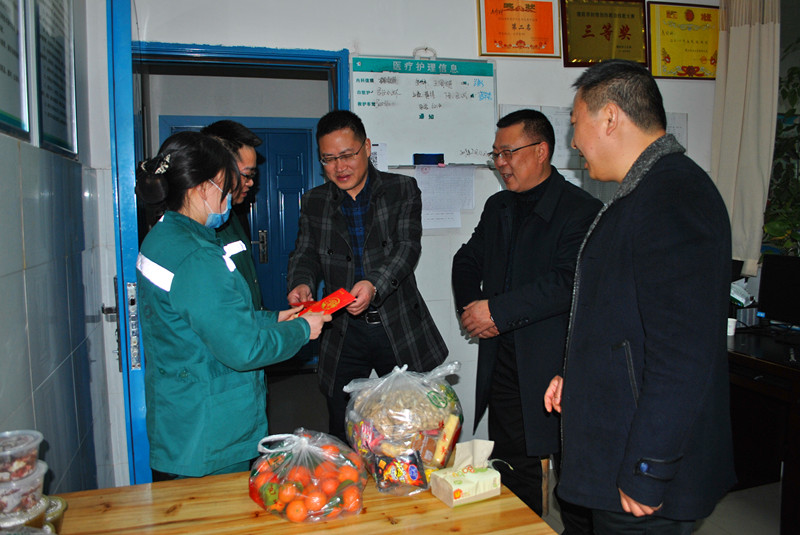 2月4日晚7:30,值此辞旧迎新、阖家团圆之际,我院院长陈万军、副院长蔡懋、工会主席毕长斌、支委委员邱俊以及总值班等人员,深入临床一线及后勤保卫等科室,看望慰问了除夕夜坚守岗位的全体值班人员,为他们送去了节日慰问品和慰问金,并致以诚挚的问候和新春最美好的祝福。