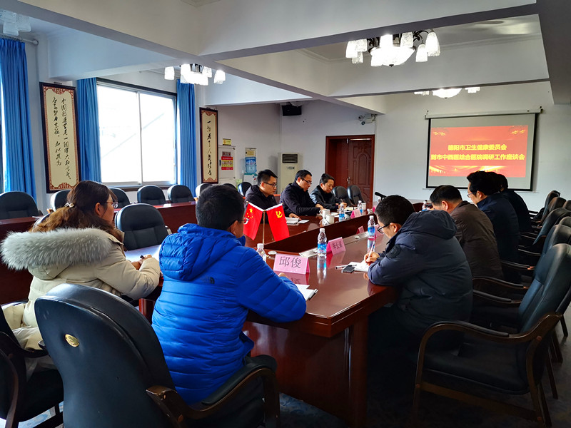 2月21日下午,德阳市卫生健康委员会党委委员、副主任唐敏、中医发展管理科科长刘向林一行到我院开展调研工作座谈会。我院院长陈万军、党支部书记聂清培等支委班子成员和派驻纪检委员参加了座谈会。