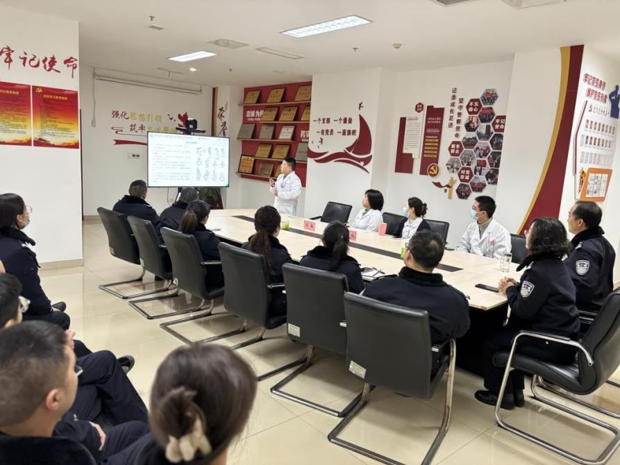 为深入落实爱警暖警政策,切实守护一线公安干警身心健康,1月21日上午,成都中医药大学附属医院德阳医院受邀走进公安出入境接待处,成功举办“中医保健进警营 慧警护航送健康”主题公益科普活动。活动聚焦警务人员职业健康特点,通过专业讲座与实操诊疗相结合的形式,将优质中医健康服务送至警营一线,获得全体参训干警的热烈响应与高度认可。