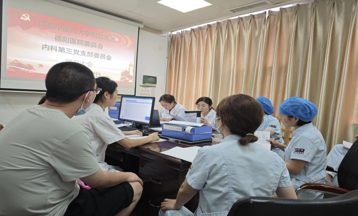 7月31日,内科第一党支部组织全体党员在党支部活动室集中学习《中国共产党第二十届中央委员会第三次全体会议公报》《中共中央关于进一步全面深化改革 推进中国式现代化的决定》,会议由党支部书记陈娟主持。