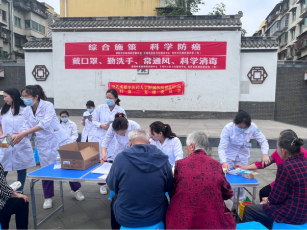 4月15日至21日是第30个“全国肿瘤防治宣传周”。为高质量推进健康中国建设,按照《健康中国行动——癌症防治行动实施方案(2023-2030年)》相关要求,4月15日上午,内科第二党支部联合德阳市疾控中心、德阳市下河东社区,在龙井村社区组织开展以“综合施策 科学防癌”为主题的肿瘤防治宣传活动,倡导全社会关注肿瘤了解肿瘤,共同努力创造良好生存环境,让人们远离癌症。活动现场,内科第二党支部专家为前来咨询群众解疑答惑,免费测量血压、血糖及诊疗服务。分发肿瘤防治宣传手册近100余份,耐心向群众讲解平时生活中应当注意的肿瘤防