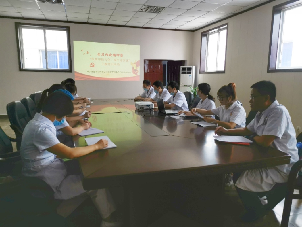 为弘扬中华传统文化,普及中医药知识,让党员同志和患者感受端午节独特的习俗,2020年6月23日下午,我院外科党小组开展了学习两会精神暨“传承中医药文化,端午节送去安康”主题党日活动,党小组党员、入党积极分子参加此次活动。党小组组长、业务副院长邱俊同志首先带领大家学习了习近平总书记在全国两会上的重要讲话和全国两会精神,要求我组党员同志要深刻领会“两会”精神实质,把贯彻落实“两会”精神与实际工作结合起来,与履行自身岗位职责结合起来,以务实的作风、饱满的激情、负责的态度,全面提升综合服务能力,全力做好新时代卫生与健康工作