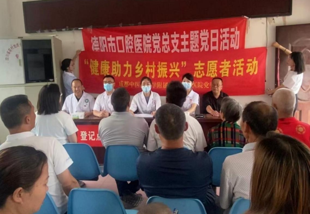 为持续助力乡村振兴工作走深走实,切实将健康服务送到村民家门口,5月21日,我院党委组织内科第二、第三党支部、行后第一党支部与德阳市口腔医院到中江县龙台镇青龙村联合开展乡村振兴送健康下乡义诊义检活动。