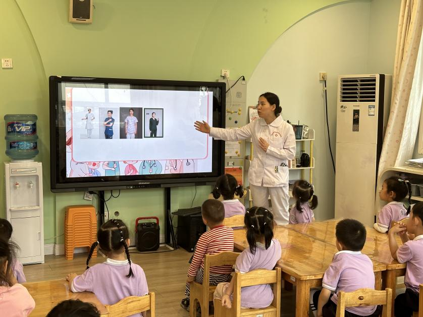 为弘扬护理职业精神,增进儿童对医护人员的了解与尊重,5月27日,医院党委联合下河东社区卫生服务中心党支部、行政后勤第三党支部走进淮河路幼儿园,以“护士阿姨的魔法手册”为主题,通过趣味互动形式向孩子们科普护士职业特色,助力健康教育启蒙。