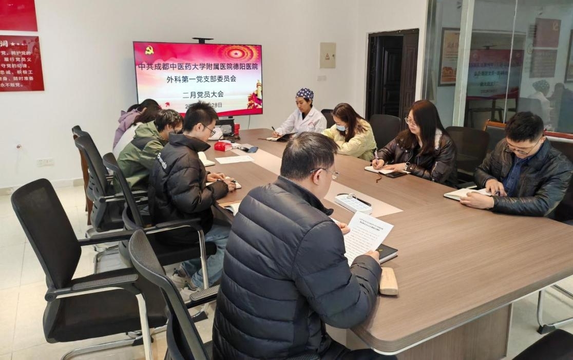 2月28日,外科第一党支部在党员活动室召开2月党员大会,会议由党支部书记蒋绍剑同志主持,全体党员参加学习。